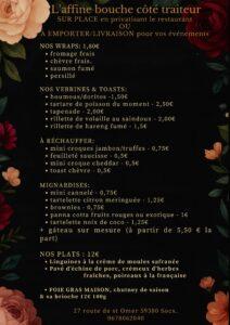 • Coté traiteur sur place, à emporter ou en livraison
